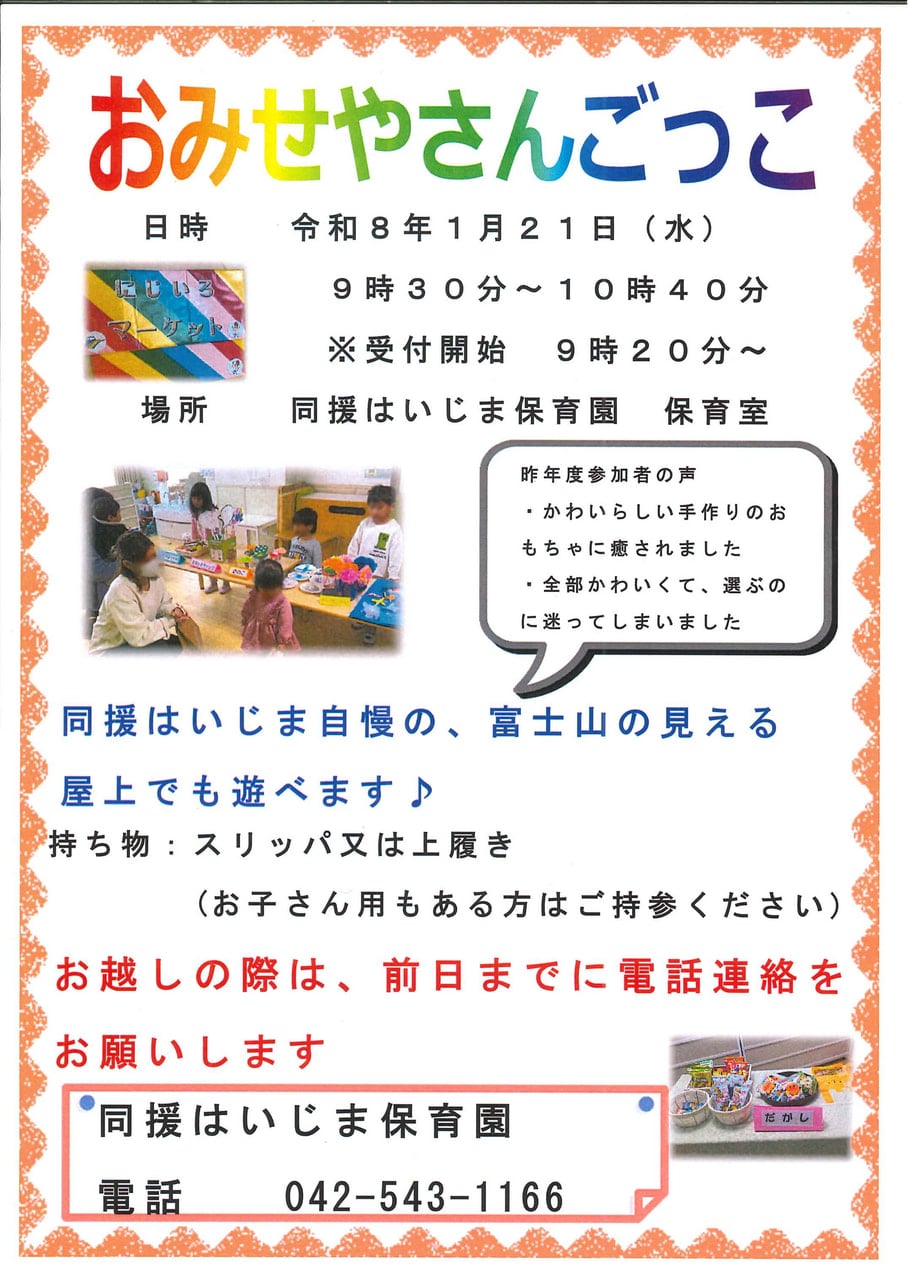 トップページ > お知らせ > 全ての記事 > お店屋さんごっこ開催のお知らせ